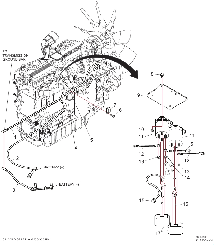 1 | Кабель заземляющий трансмиссия-стартер-двигатель (черный) |