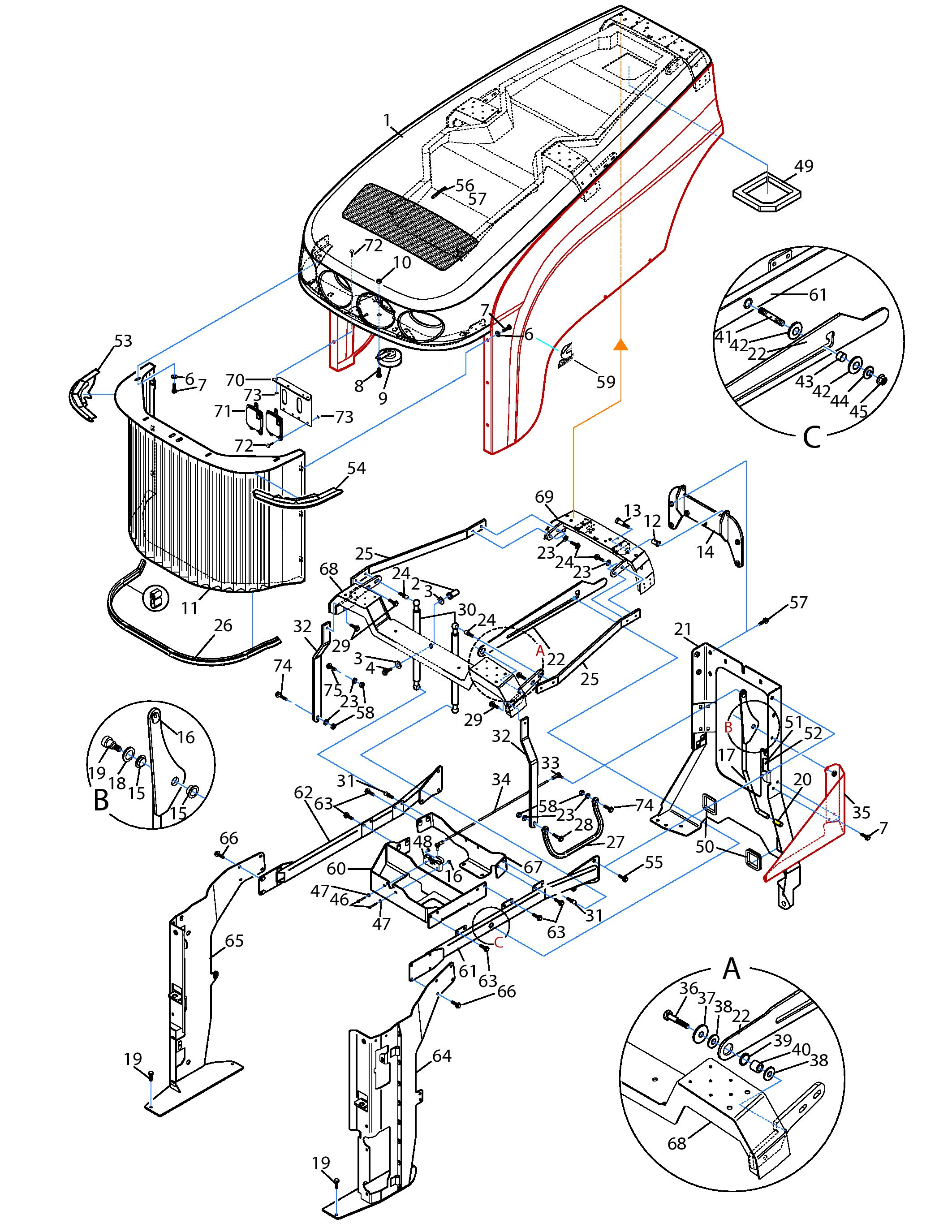 1 | РАМА, СВАРНАЯ КОНСТРУКЦИЯ - ВЕРХНИЙ ПРАВЫЙ ДВИГВТЕЛЬ |