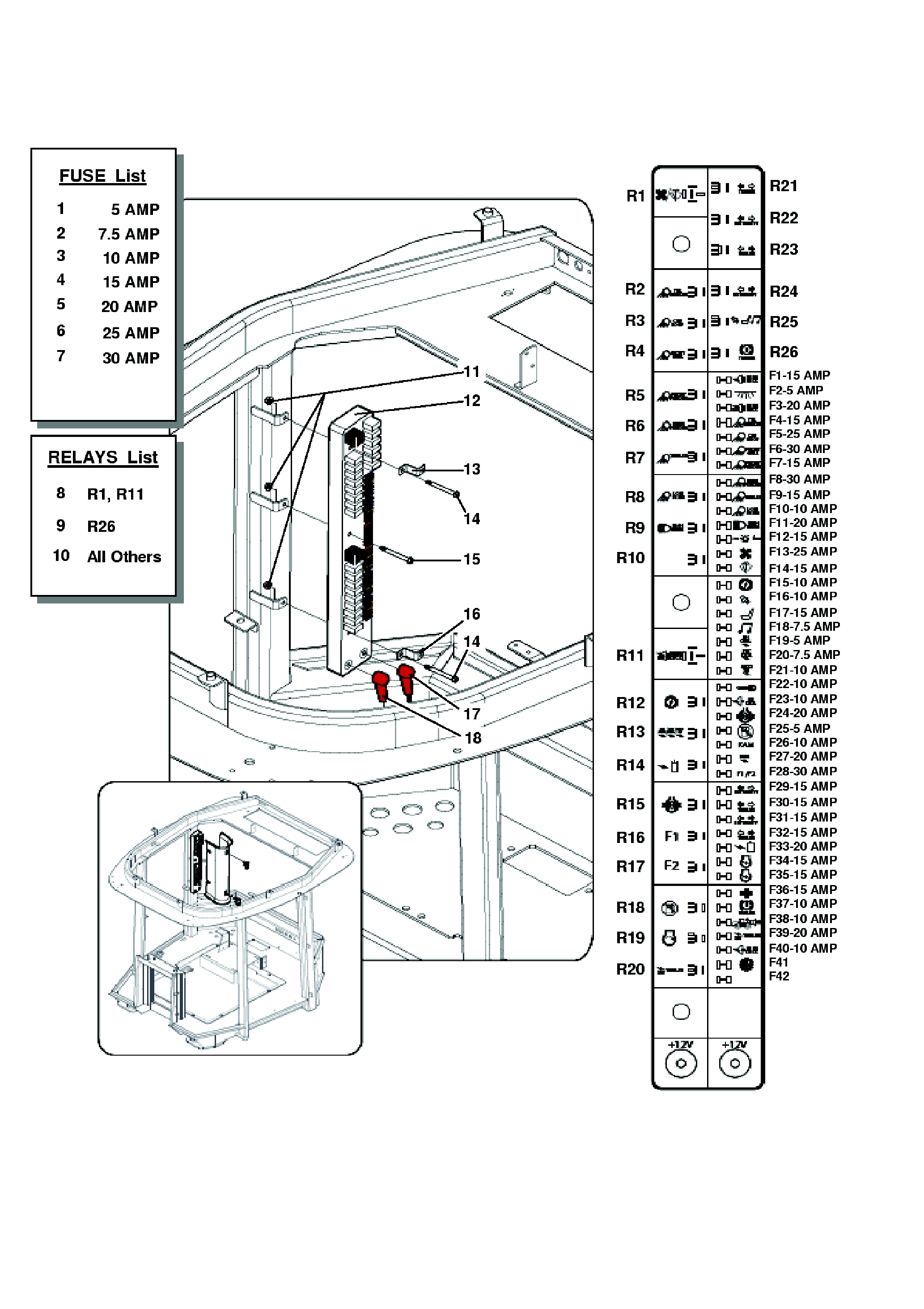 23 | РЕЛЕ - 20А, ГЛАВНАЯ ПАНЕЛЬ ПРЕДОХРАНИТЕЛЕЙ КАБИНЫ |