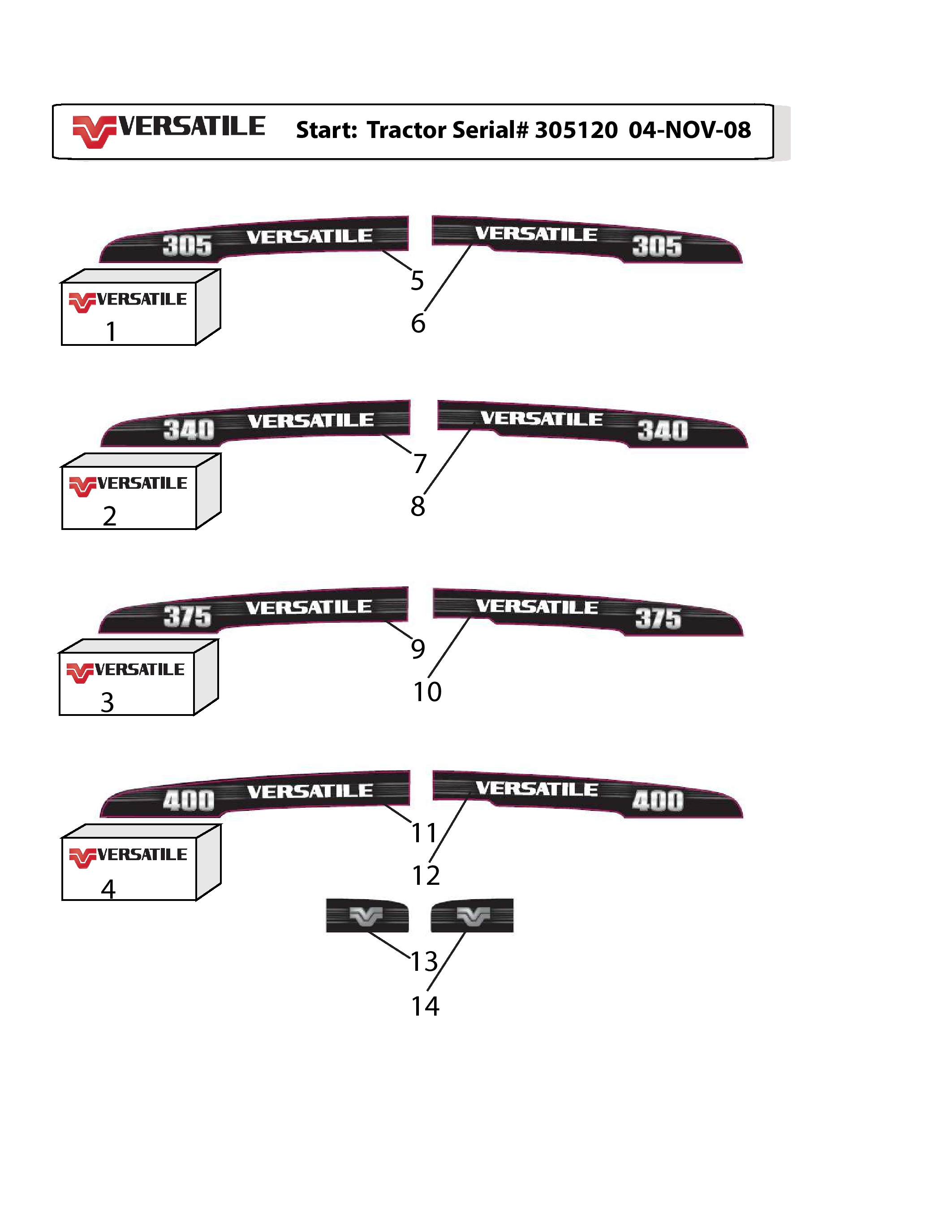 1 | БИРКА - МОДЕЛЬ 305 Versatile, ПРАВАЯ СТОРОНА КАПОТА |